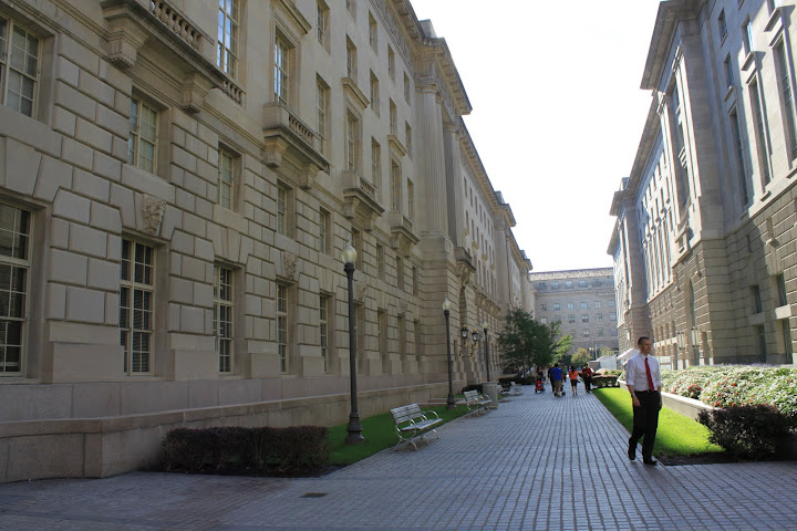Продолжаем прогулку по Вашингтону. После аэрокосмического музея мы снова отправились гулять по городу. Решив поберечь силы, мы сели на метро и проехали пару остановок, т.к. на остальные музеи времени уже не было. Вынырнули мы из метро возле министерства торговли.