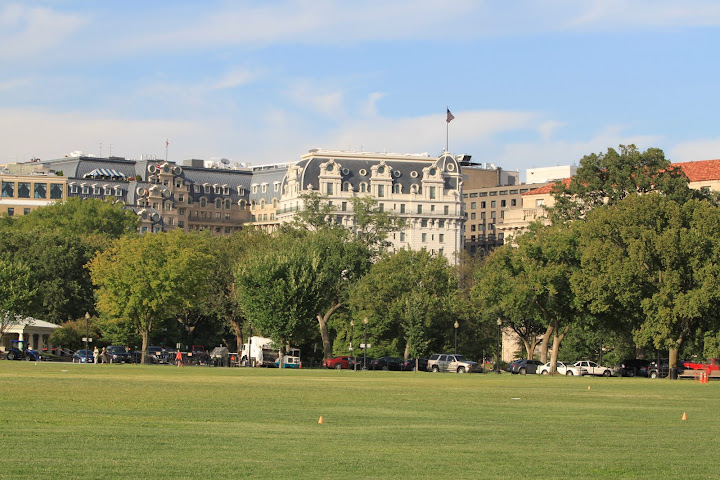 В кнце скверика нам открылось огромное поле с аккуратно подстриженной травкой. По площади поле занимало целый квартал. Нам предстояло пересечь это поле пешком для достижения главной цели. Справа и слева от цели стояли красивые здания.