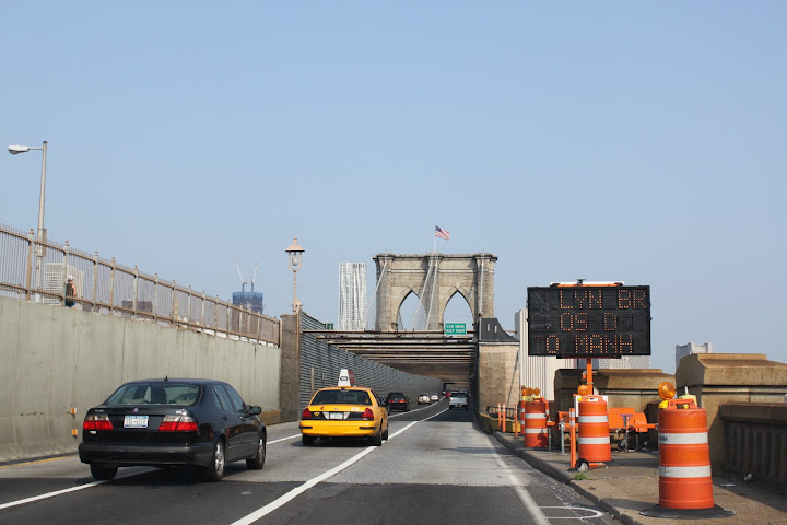На 7-й день утром мы выехали домой. Ехать было решено бесплатно. Ну или почти бесплатно. Ведь в воскресенье бардака в Манхеннене меньше. Единственный халявный путь из Бруклина - по Бруклинскому мосту. Я вам его уже показывала, но сверху, с пешеходной дорожки. А вот так выглядит нижний уровень: