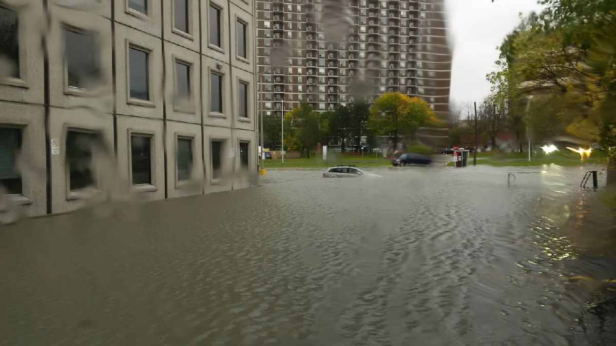 Oct. 31st, 2017 09:01 pmВчера днем закончился дождик. По прогнозу на нас должно было вылиться 50-100мм за сутки. Сколько точно вылилось не знаю (вроде говорят больше 100мм за два дня), но 9000 клиентов Hydro Ottawa остались без электричества, а часть города малость подтопило. Угол Риверсайд и Банк.