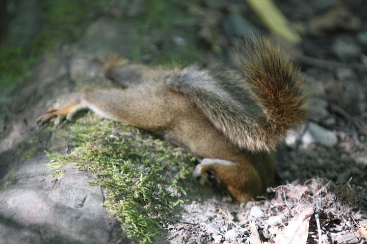 Но сейчас не об этом, сейчас про воскресенье. Итак, встали мы сосрання (ну, насколько это было возможно после ночных песен и плясок) и обнаружили, что у нас по сайту разгуливают белки с бурундуками. Дети ипредставители слабого пола мужчины тут же бросились их кормить. И тут мы обнаружили интересную весчь. Две белки разделили между собой обязанности: одна таскала орехи, а другая была сторожевой - разгоняла бурундуков.