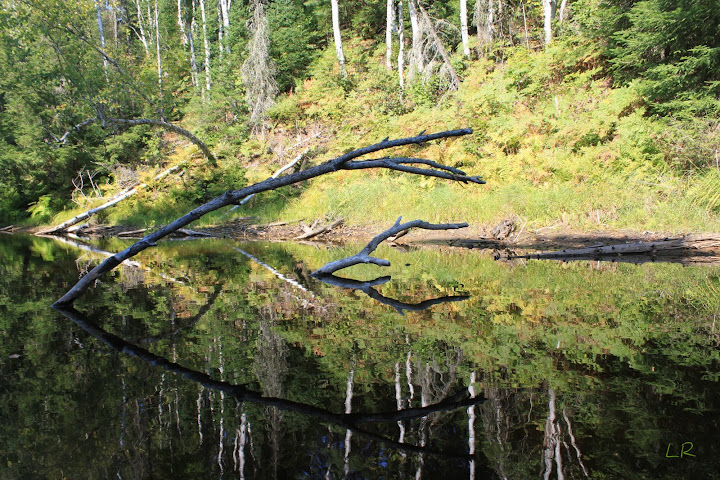 Река сильно пересохла и воды в ней было эээ... мягко говоря, маловато. Поэтому нужно было выбирать маршрут осторожно, чтобы с одной стороны не сесть на мель, а с другой - обойти заваленные бобрами деревья.