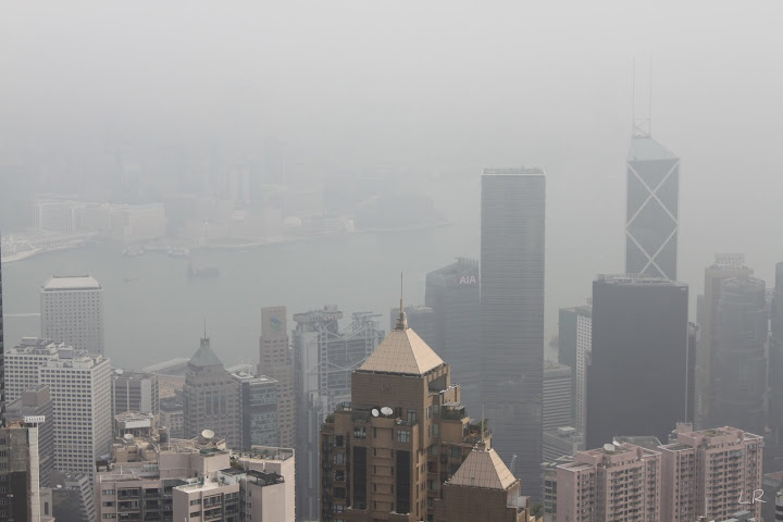 А вот и он, вид на город. Всё ещё в тумане, но уже гораздо лучше, чем было рано утром.