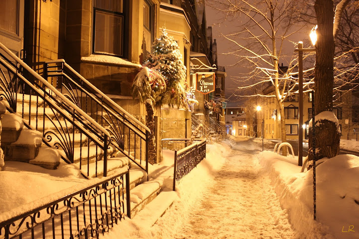 Вот вам обещаный ночной Квебек того же пятничного дня. Снег шёл весь день и только к вечеру пришёл. Так что ночью город был просто сказочный.